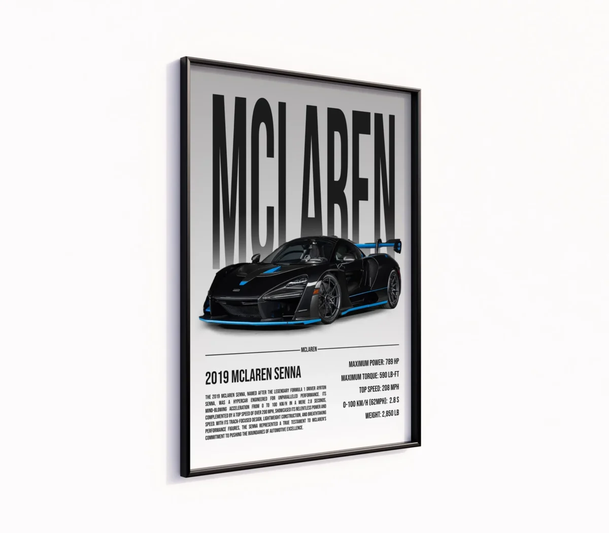 Embrace the essence of the Mclaren Senna with this exquisite, high-quality illustration. Perfect for decorating children’s rooms, nurseries, playrooms, bedrooms, or office spaces, this wall art print is crafted to captivate and celebrate the beauty of this remarkable vehicle.